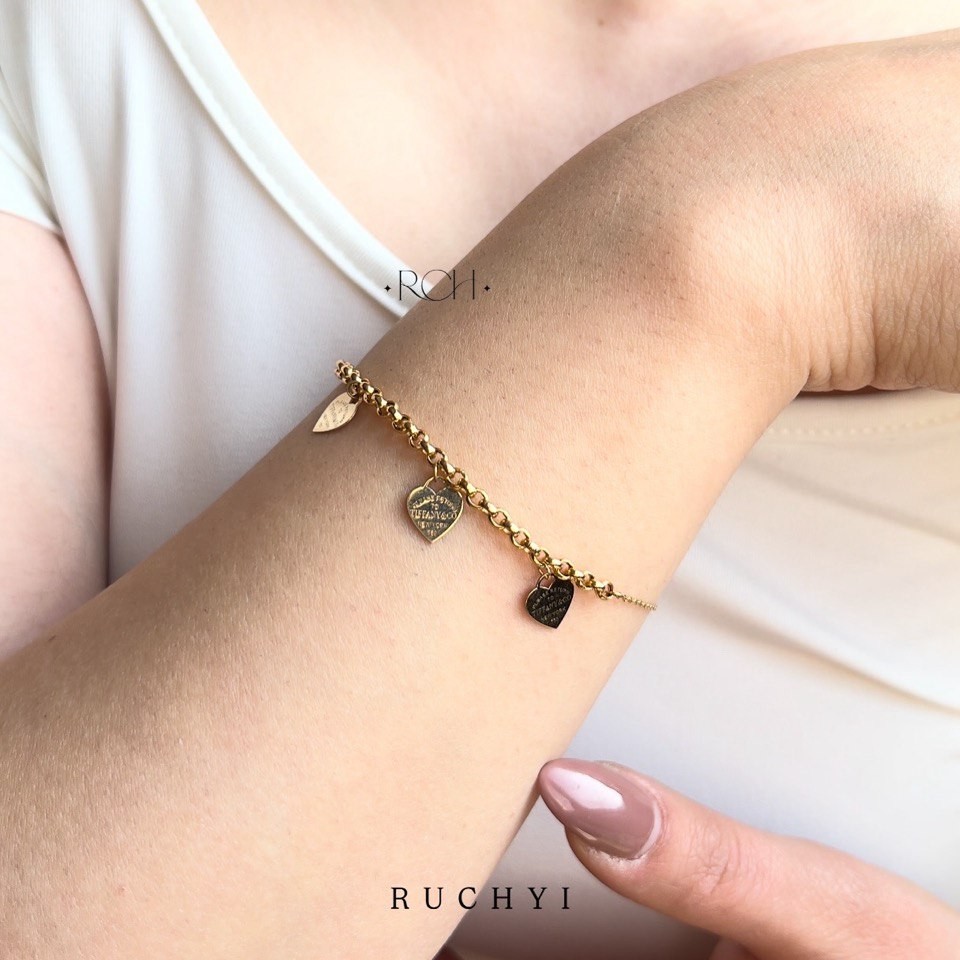 این دستبند شیک و خاص، دارای سه قلب آویز ظریف است که هر کدام با برند Tiffany حک شده و هویت اصیل این طراحی لوکس را به نمایش میگذارند. قلبها که امضای احساسی و ماندگار برند تیفانی هستند، نمادی از عشق، لطافت و پیوندی عمیق با زیبایی کلاسیک بهشمار میروند.