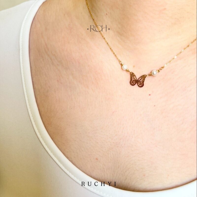 در این گردنبند، طرح پروانه به کار رفته است؛ پروانه در فرهنگها و نمادشناسی، نشانهای از آزادی، تحول و زیبایی روح است. پروانه یادآور رهایی از محدودیتها و آغاز یک زندگی نوین و پر از امید است. داشتن زیوری با نماد پروانه، در واقع بهنوعی همراه داشتن انرژی مثبت و یادآوری تغییرات زیبا در زندگی است.